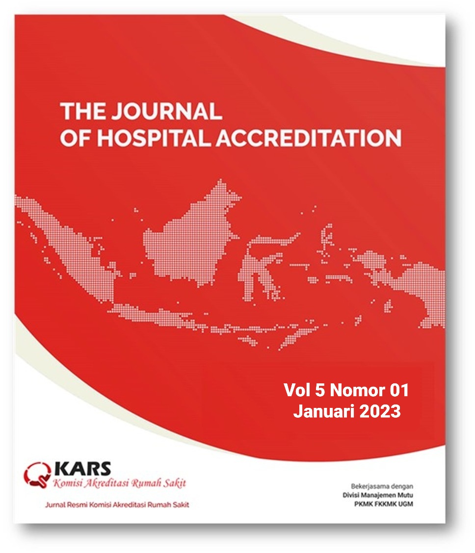 The Journal of Hospital Accreditation (JHA) merupakan open access and peer-reviewed journal yang memuat artikel penelitian (research article) di bidang akreditasi rumah sakit, yang terkait dengan pengembangan sistem dan standar akreditasi maupun penerapan dan evaluasi standar akreditasi rumah sakit. Diterbitkan oleh Komisi Akreditasi Rumah Sakit (KARS) bekerjasama dengan Divisi Manajemen Mutu, Pusat Kebijakan dan Manajemen Kesehatan, Fakultas Kedokteran, Kesehatan Masyarakat dan Keperawatan Universitas Gadjah Mada dengan frekuensi dua kali dalam setahun.